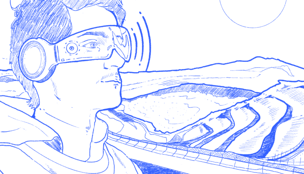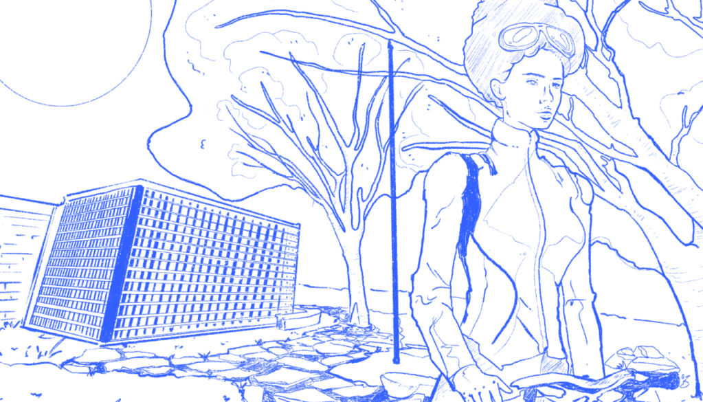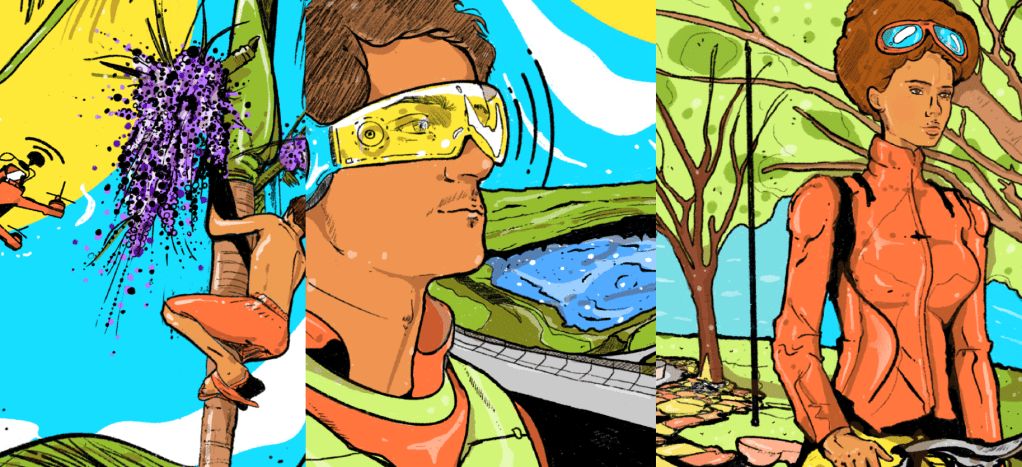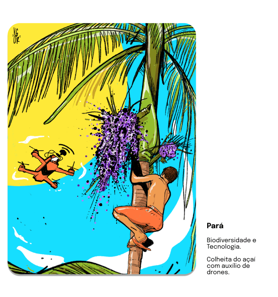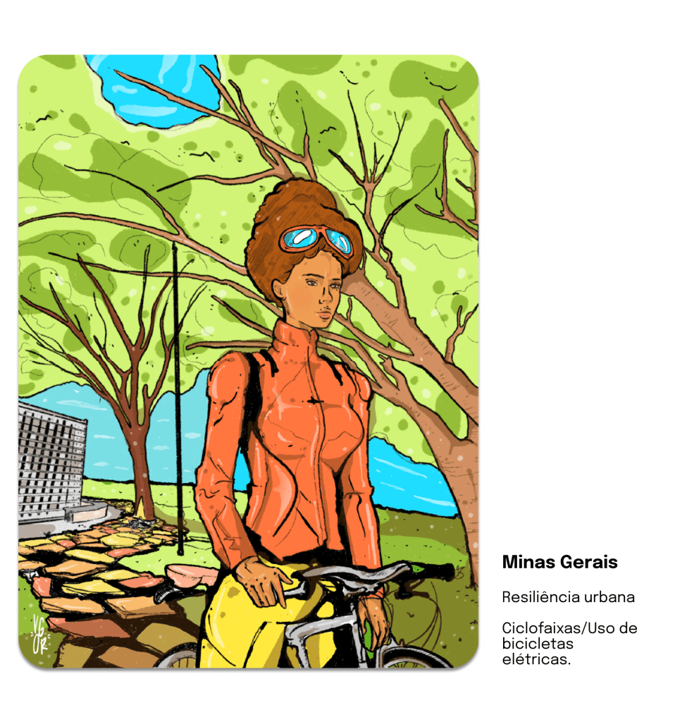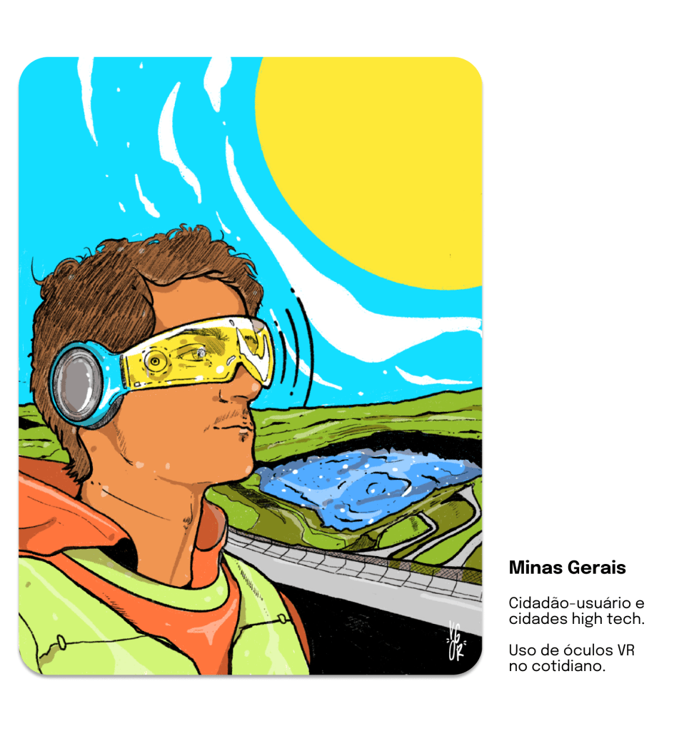 Ilustrações sobre cidades proxímas de represas da Vale, mostrando seu reuso da estrutura da represa nas cidades próximas em um futuro alinhado a tecnologia em Minas Gerais e no Pará.